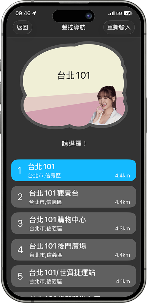 「導航到台北車站」、「我要去信義區」