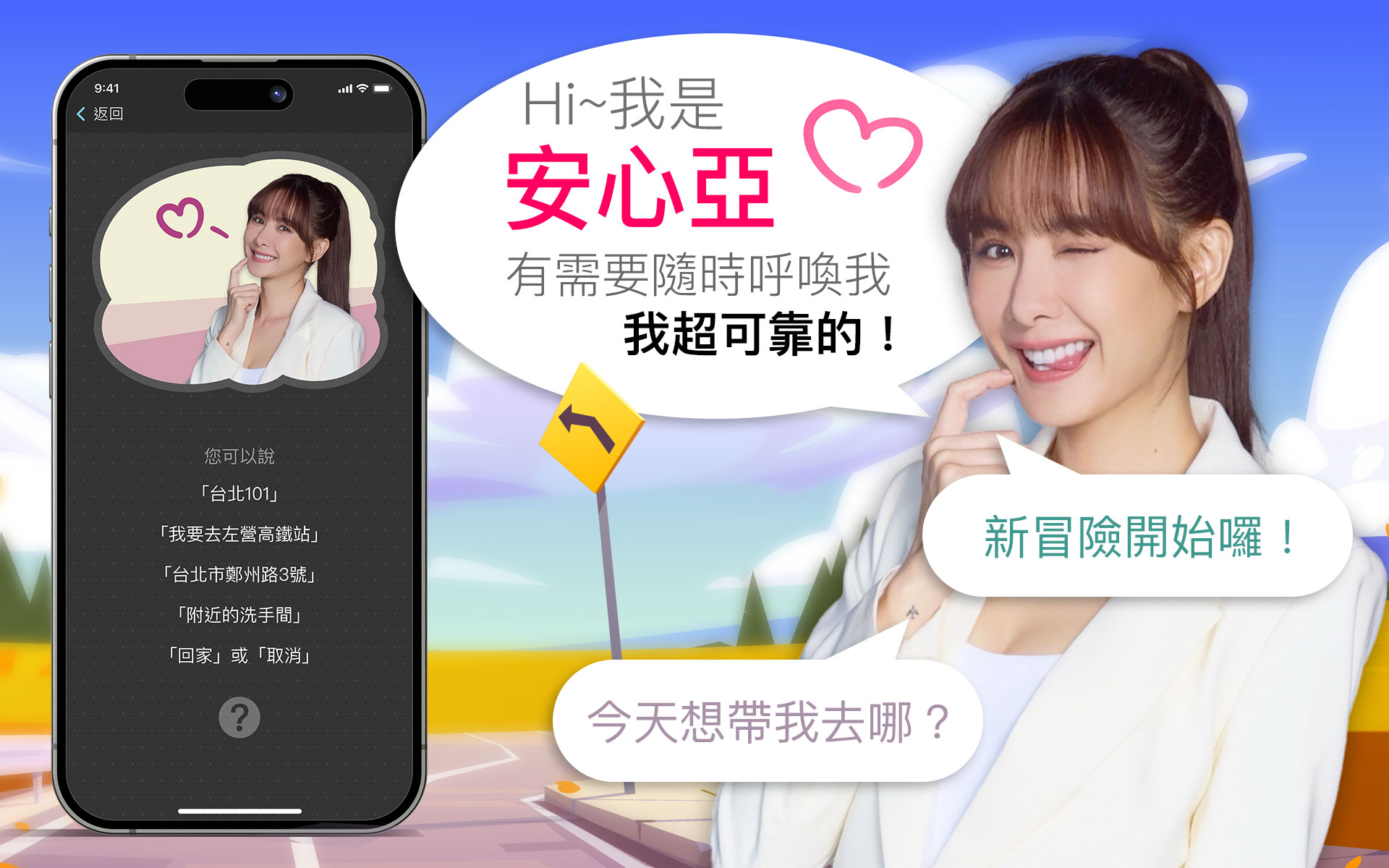 只要開啟導航,安心亞會有朝氣地問你:「我們的目的地是?」或是「葛格,今天去哪兒兜風?」,讓你瞬間融化,心情也跟著雀躍起來!出門充滿活力!